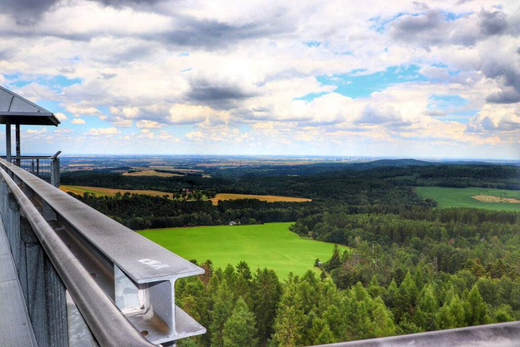 30 lipca świętowaliśmy 14. rocznicę ślubu. Z tej okazji przeżyliśmy szaloną, dwudniową przygodę w Czechach. W końcu skompletowaliśmy sprzęt biwakowy i ruszyliśmy w podróż! Pierwszego dnia odkryliśmy aż trzy wieże widokowe – jedną w Polsce i dwie w Czechach. Dzisiejszy wpis poświęcony będzie niesamowitej, zapadającej w pamięć wieży widokowej na Granicznym Wierchu (Hraniční vrch) w Górach Opawskich, tuż przy granicy polsko-czeskiej. Ta niezwykła, stalowa konstrukcja składa się z dwóch wież połączonych długą kładką. Emocje podczas spaceru były ogromne! Przy wieży znajduje się świetnie zagospodarowany teren: wiata, plac zabaw, drewniany tor sprawnościowy, tablice informacyjne oraz zjazdowa trasa rowerowa. Choć patrząc z dołu można poczuć lekki niepokój, konstrukcja jest stabilna i w pełni bezpieczna. Wejście na wieżę jest bezpłatne. A widoki? Cudowne! Zresztą – zobaczcie sami.